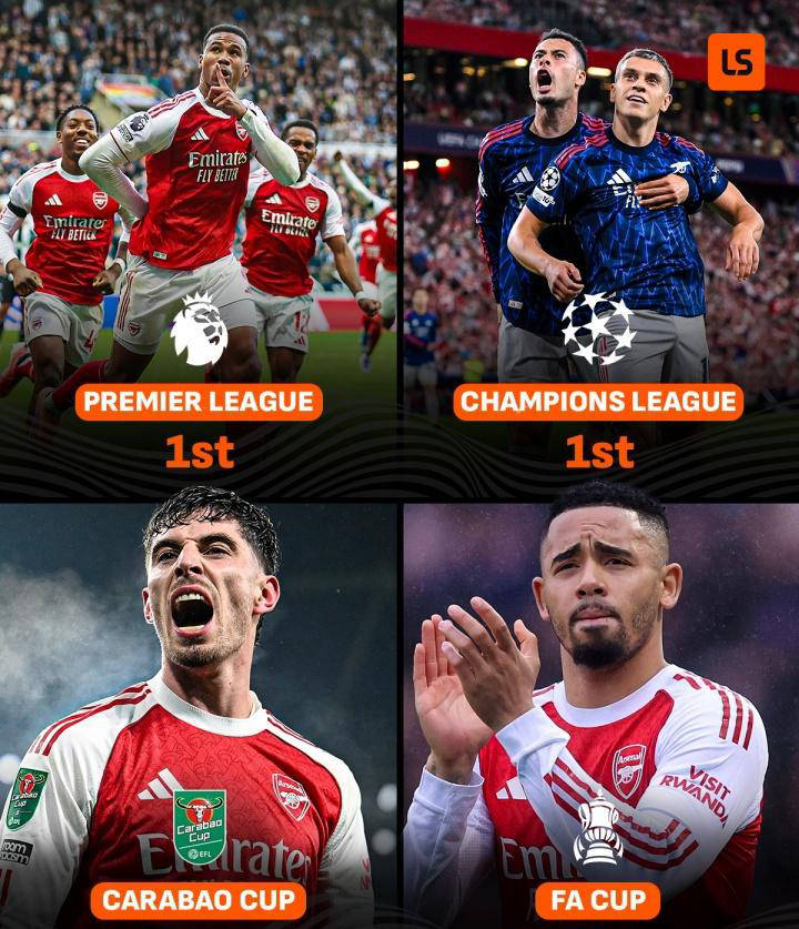 6分领跑+四线冲冠+欧冠全胜!阿森纳剑指队史首冠,能圆4冠王梦吗?